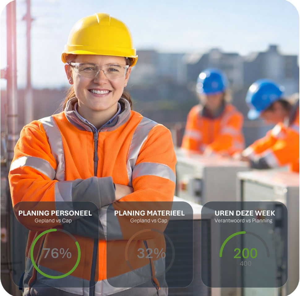 Plan projecten, registreer uren en productie en beheer materieel vanuit één systeem. -