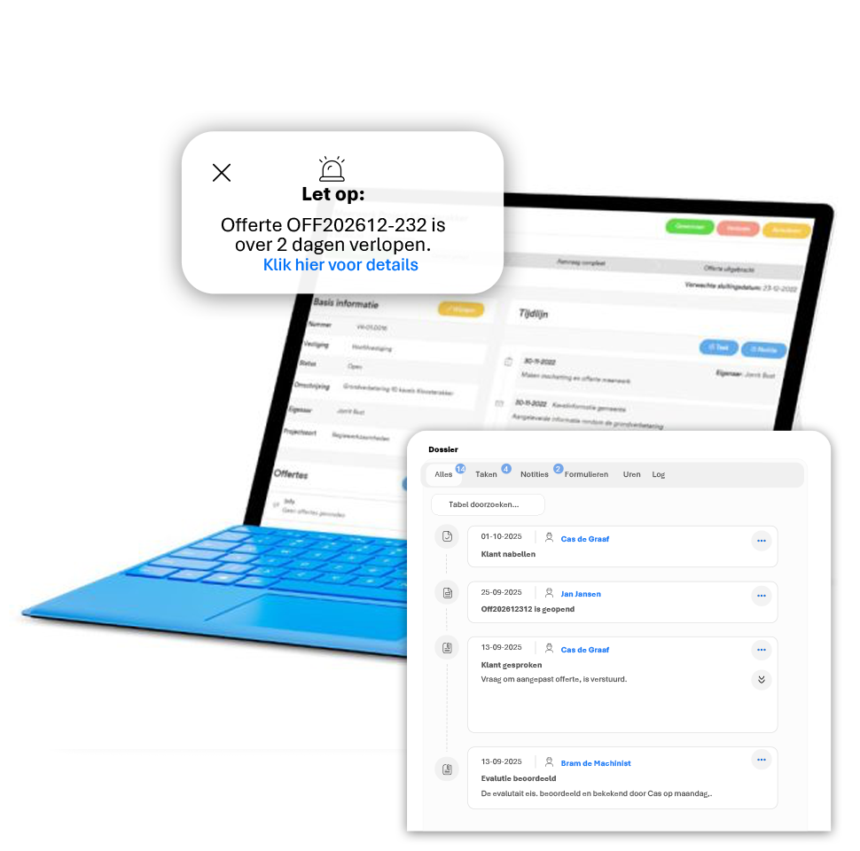 Houd overzicht over prospects, offertes en lopende verkooptrajecten in één systeem. -