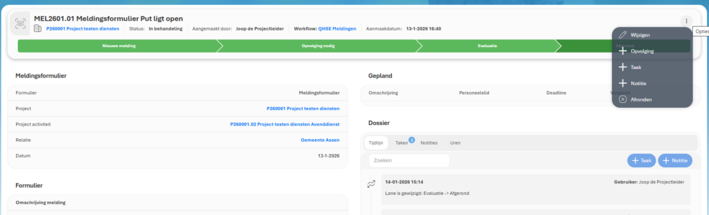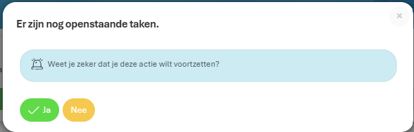 De verplichte taak is nu afgerond en de QHSE manager zet het formulier een status verder. Je krijgt nu de melding dat er nog openstaande taken zijn, maar deze kun je negeren.